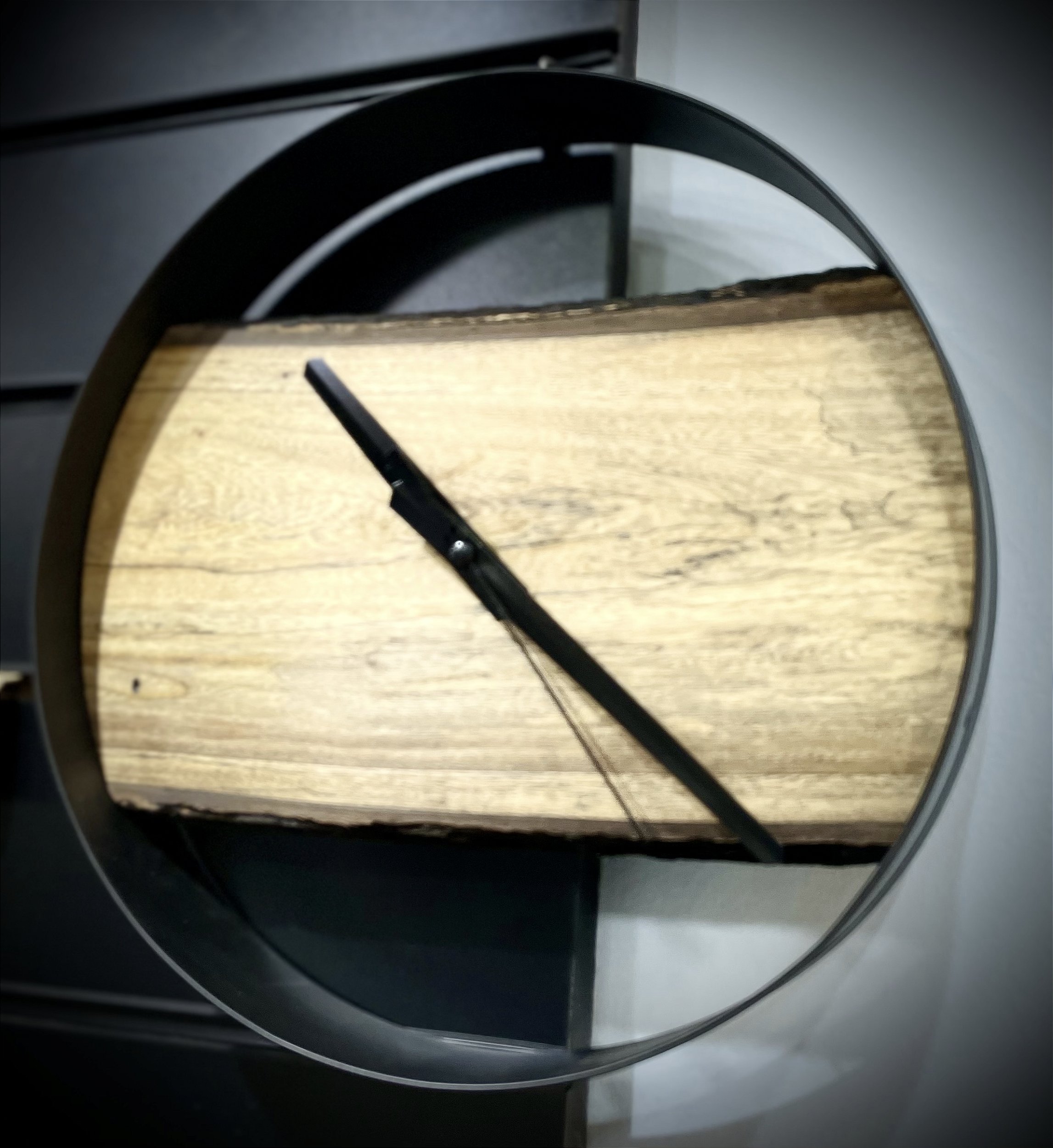 Relógio Ipê e aro + ponteiros em metal na cor preto fosco. Elegante e exclusivo. Perfeito para fazer parte da decoração do seu lar.